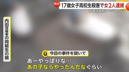 <17歳女子高生殺人事件>監禁された車から逃げようとした少女を暴行…橋から落とし殺害か 容疑者知人「カッとなりやすかった」 北海道旭川市 …た」(警察の捜索を見た人) 警察は6月12日、いずれも旭川市に住む内田梨瑚容疑者(21)と女(19)を殺人の疑いで逮捕。 村山さんが、内田容疑者が… (出典:北海道ニュースUHB) |