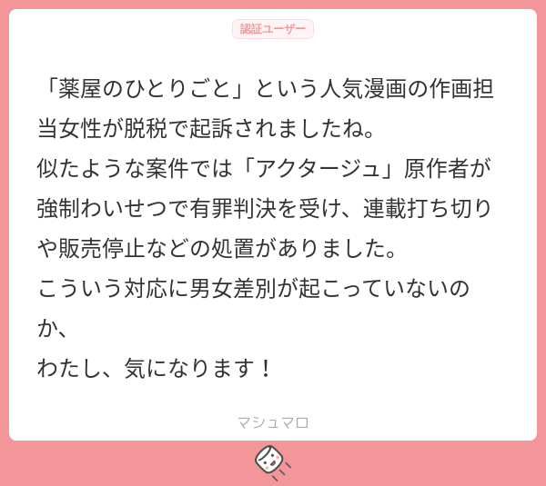 @cheerful_rider自民党議員にも、これくらいの判決望む てか、この作家さん納付済みでこの判決って違和感しかない 「薬屋のひとりごと」の作画担当の漫画家 執行猶予付き有罪判決 所得税4700万円を脱税 福岡地裁 l.smartnews.com/YPFgz #スマートニュース
