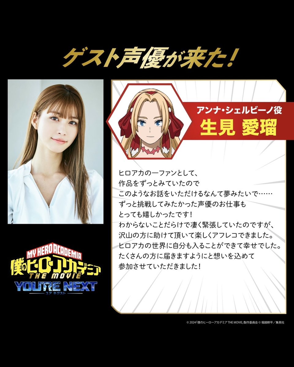 @Shiny0207めるるの古参ファンだからゲスト声優なの嬉しみ♬(^-^) #生見愛瑠 #めるる #僕のヒーローアカデミア #ヒロアカ #ヒロアカ劇場版 #ユアネクスト #heroaca_a #次は僕たちだ pic.twitter.com/O9BVcSLn4E