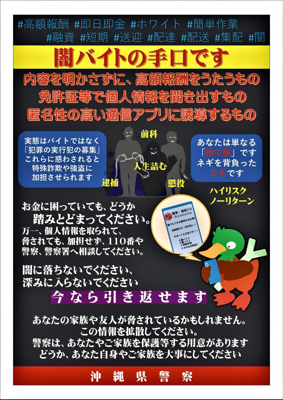 @lawyerNAKATA59闇バイトをしてしまった人の刑事弁護もしていますが、約束通り報酬を貰った人はいません。むしろ、遠方の犯行現場かな出掛けた際の新幹線代やタクシー代等も、自腹になったまま持ち出し、マイナスになっているケースが多いです。闇バイトは、明らかに割に合わないです。 x.com/npa_koho/statu…