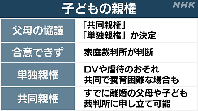 離婚後「共同親権」導入を柱とした改正民法が成立 DV原因で離婚した当事者から懸念の声も「不安を子どもたちに与えてしまう法律」【news23】 ■「共同親権」も選択可能に 懸念点は? これまでは離婚後、父親・母親のどちらかが親権をもつ「単独親権」だけでしたが、双方が親権をもつ「共同親権」も選… (出典:(出典:TBS NEWS DIG Powered by JNN)) |